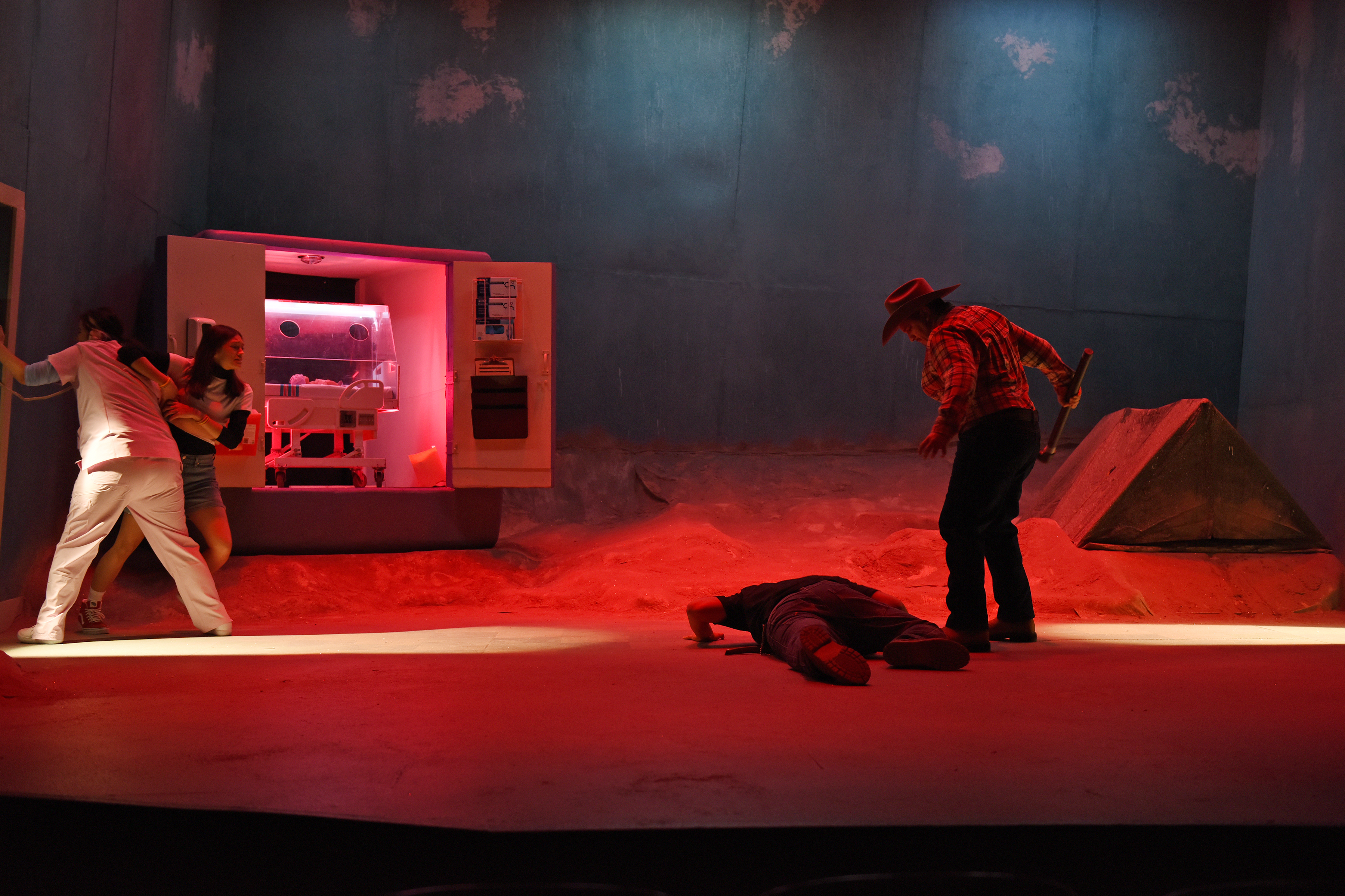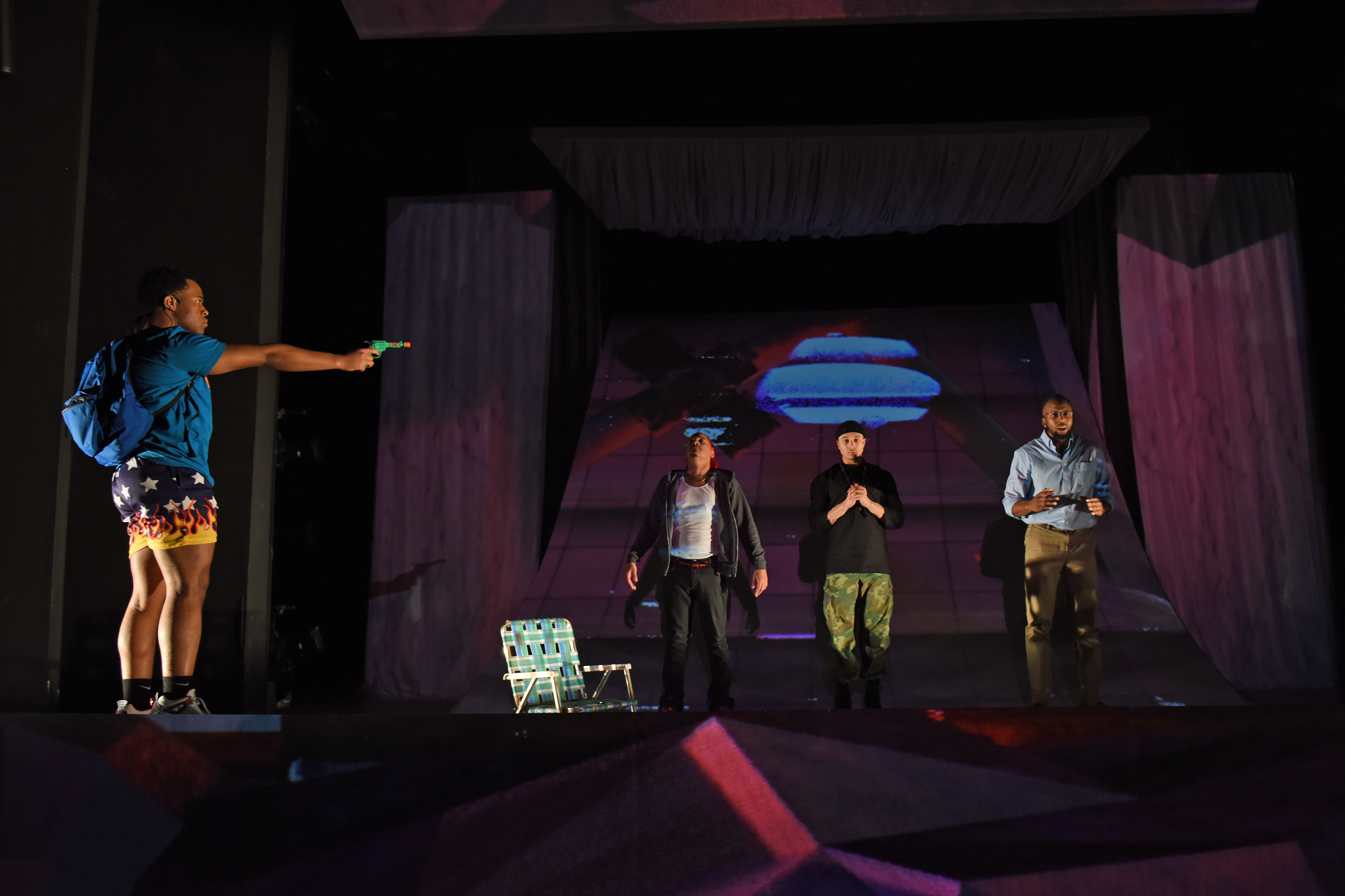 A live virtual production that utilized 12 separate rooms as isolated actor spaces, each equipped with lights, microphones, and cameras that were remotely operated and composited via a show control network. Produced as part of ASU Theatre’s 2020-21 season.